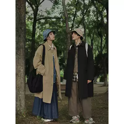 Crisis youth windbreaker men's medium and long version of the jacket 2021 new autumn and winter Japanese coat retro loose over the knee women