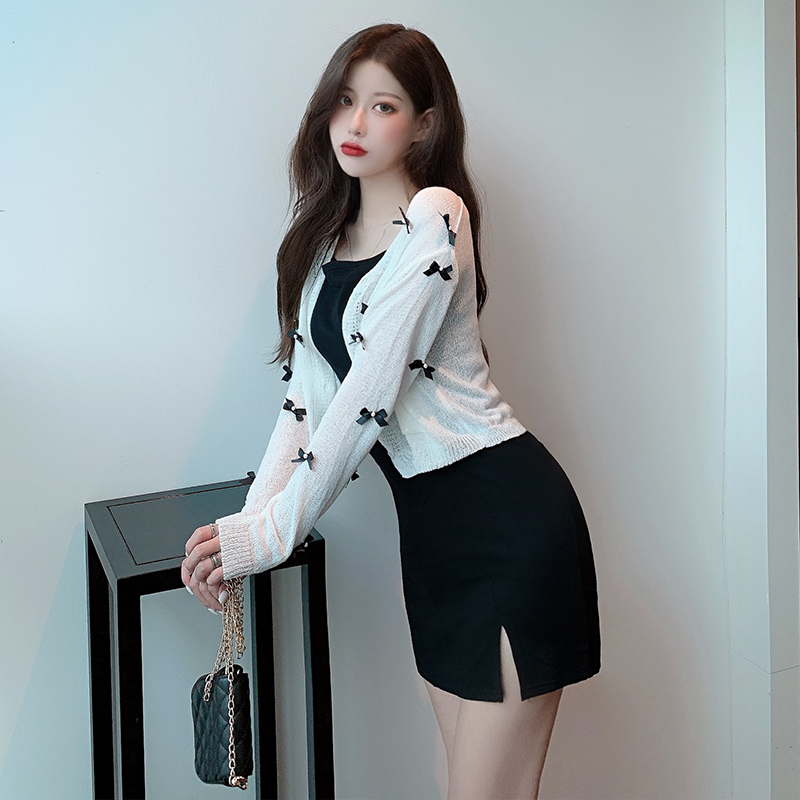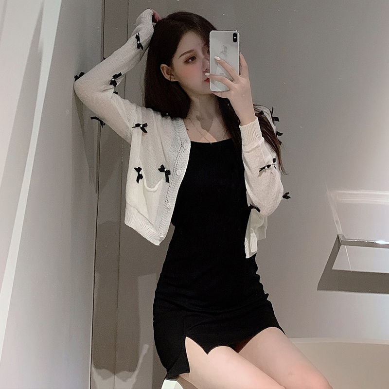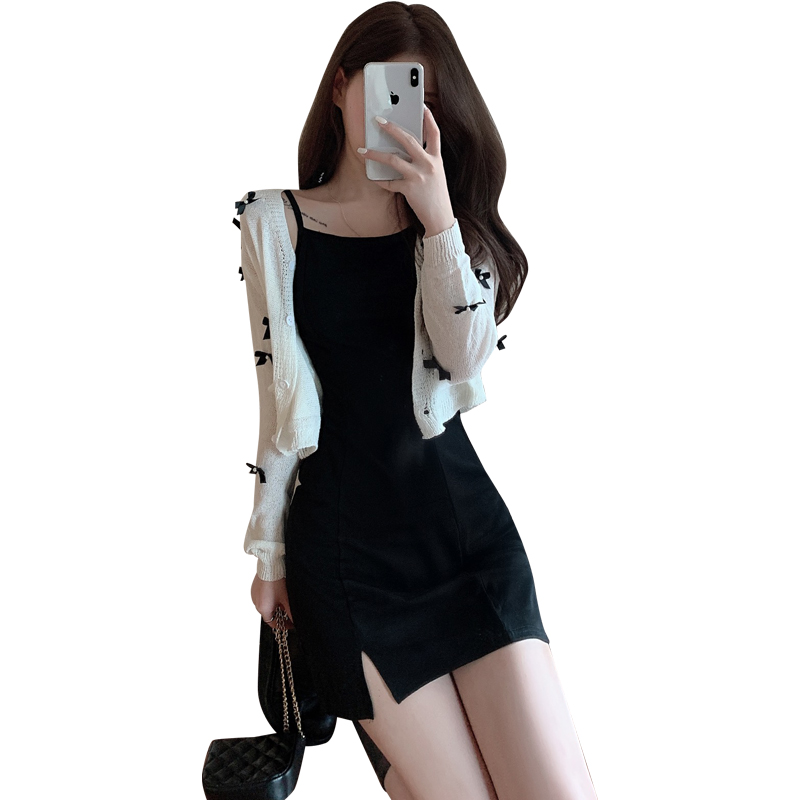 Fashion Minus Age Foreign Pie Suit 2022 New Little Sub Autumn Dress Matching Harnesses Plus Knitted Cardiovert Two Sets