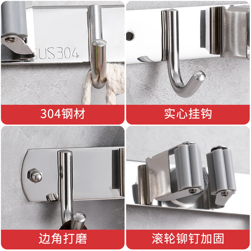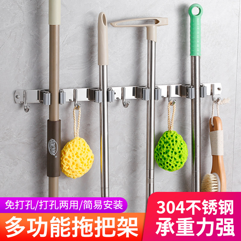 Punch-free mop clip stainless steel mop hook powder room storage artifact wall-mounted broom hanger strong sticky hook