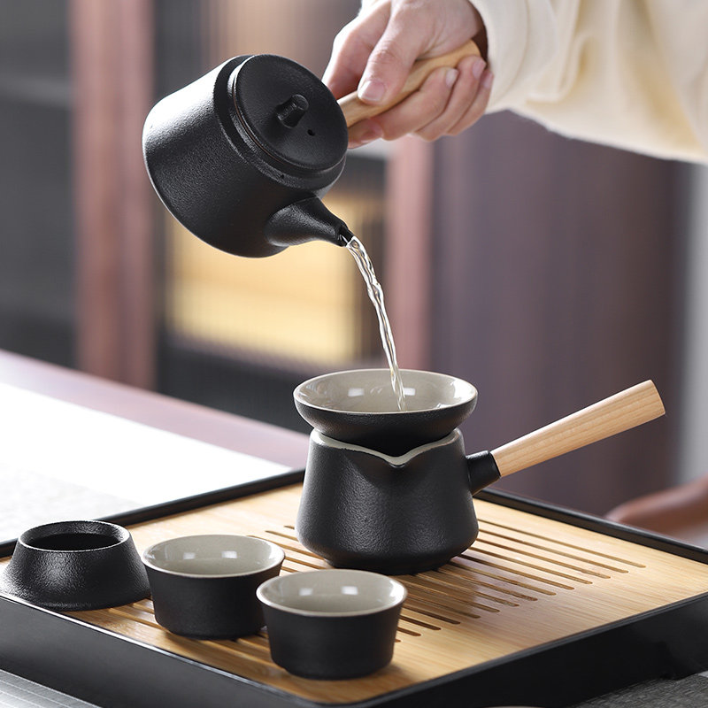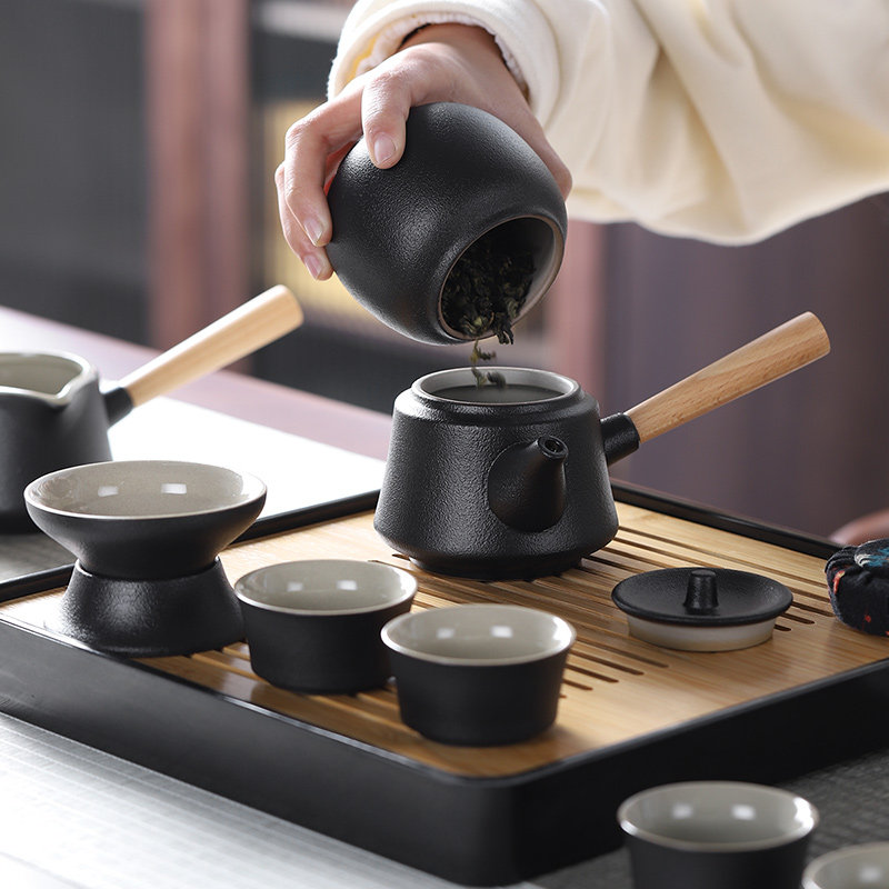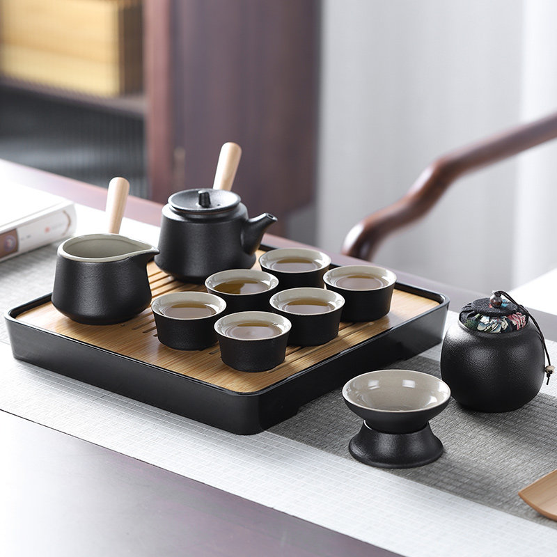 Haunfeng Day Style Simple Black Pottery side to make pot Kung fu tea suit Home storage type Bamboo Dry Tea Table Tea Tray-Taobao