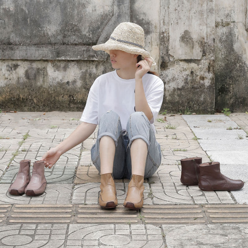 2020 Autumn Winter Original Retro Art Short Boots Genuine Leather Handsewn Sheep Leather Girl Boots National Wind Martin Boots Woman