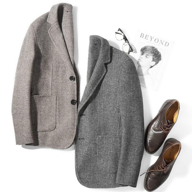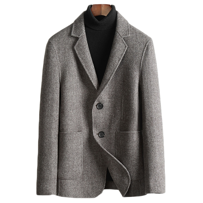 Temperament outside the new woolen coat men's short zero cashmere herringbone woolen coat British style double-sided woolen suit