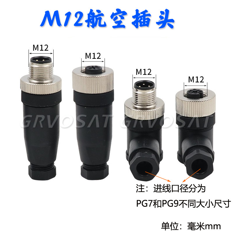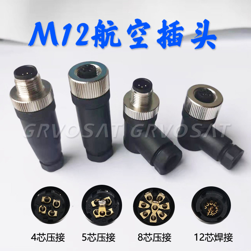 M12 aviation plug-in encoder connector 4 cores 5 cores 8 cores 12 pins male and female sensor waterproof IP67