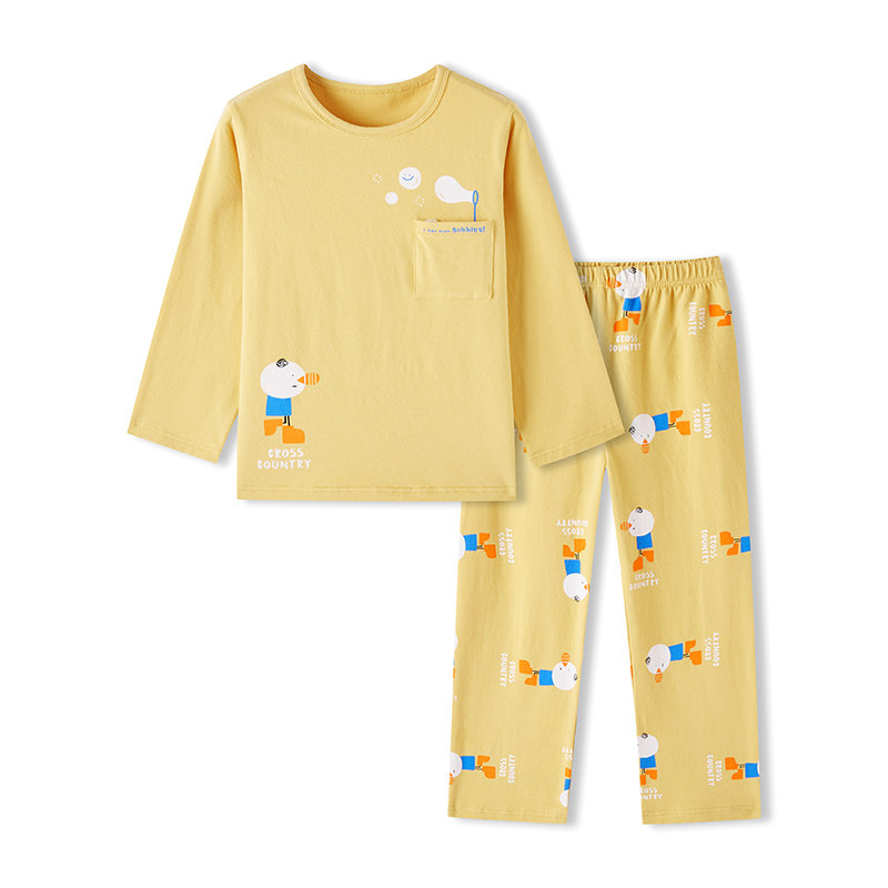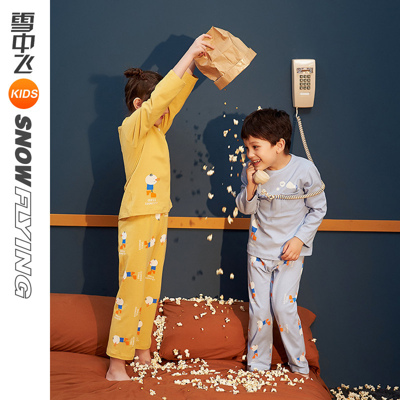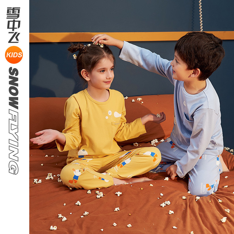 Snow fly kids Children's clothing Children's pajamas spring and autumn long-sleeved cotton thin cartoon boy and girl home clothes set