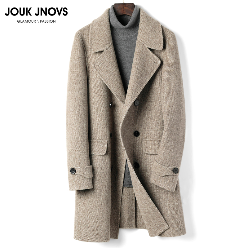 Light and luxurious 100% Aussie wool bifacial wool big clothes men's dress with double platoon button for long version casual jacket autumn winter fashion windsuit