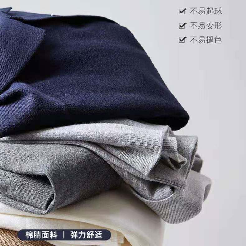 Momaike 2023 spring and autumn lapel knitted long-sleeved t-shirt men's bottoming shirt casual polo shirt polo shirt top