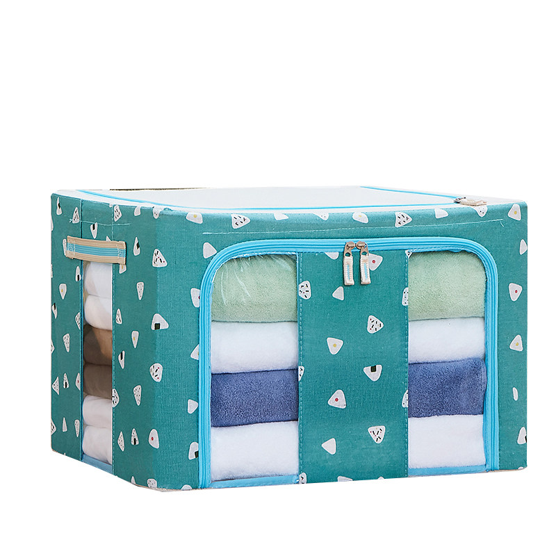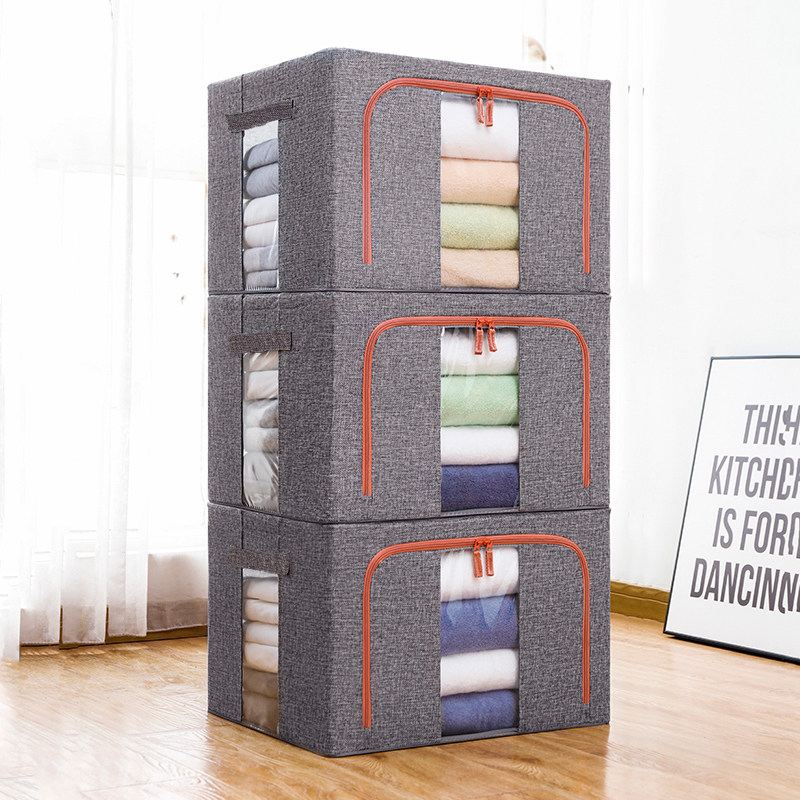 100L66 liter four steel frame cotton hemp cloth art thickened large number household folding clothes quilt cover bracelet finishing containing box