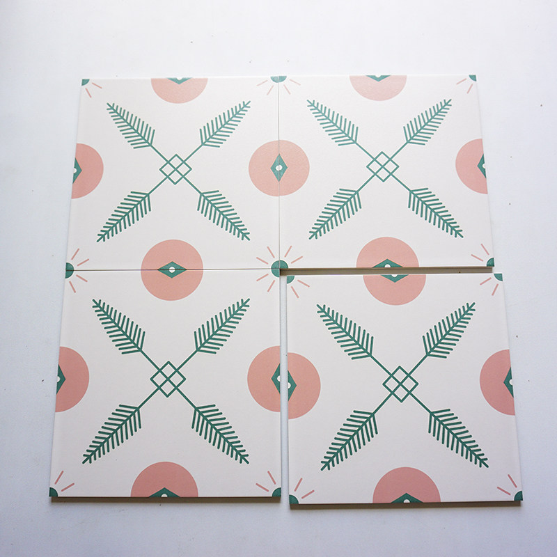 Small Fresh Green Flower Brick Famous Kitchen Art Parquet Tile 300 Balcony Non-slip Flower Sheet Floor Tile Warm Tone