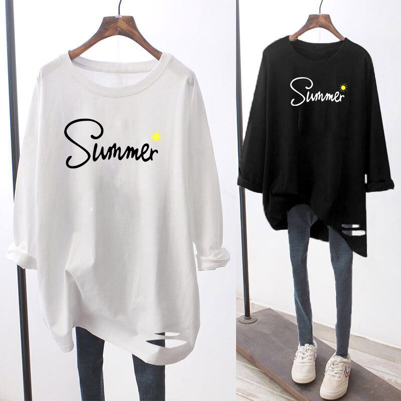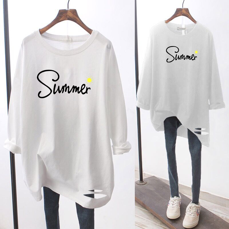 T-shirt women's long-sleeved mid-length version Korean version all-match pure cotton large size women's clothing 2022 autumn wear round neck inner wear women's top T