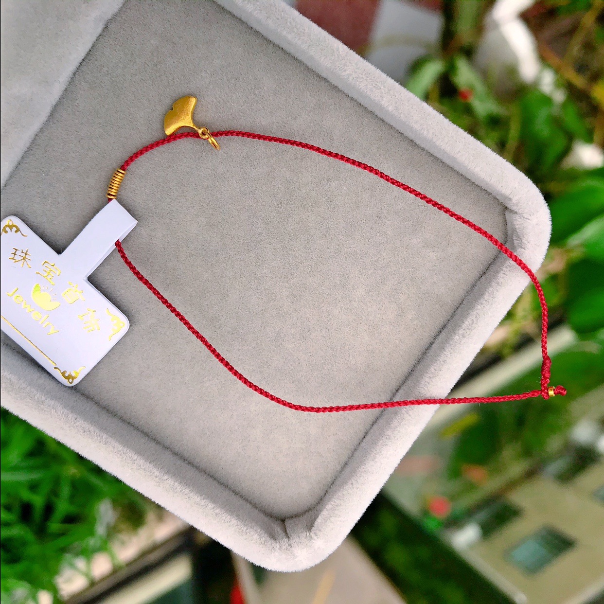0 3mm 3mm giant fine quadrubraid 24K gold foot gold septer Ginkgo Biloba Leaf this year artisanal dark red rope Handmade footballers
