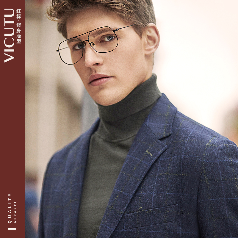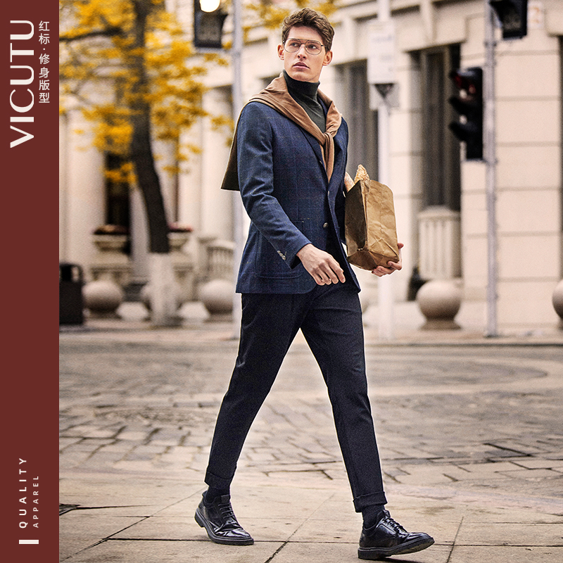 VICUTU Vicodor mall with the same men's slim single suit spring vintage plaid blazer