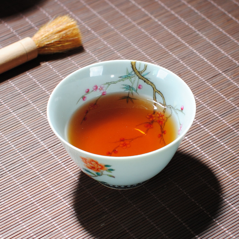 Lord Kiln Jingdezhen imitates ancient green glaze enamel Enamel Tea tea Plum Over Wall Painting Master's Cup Wine Tasting Utilita Tea Cup