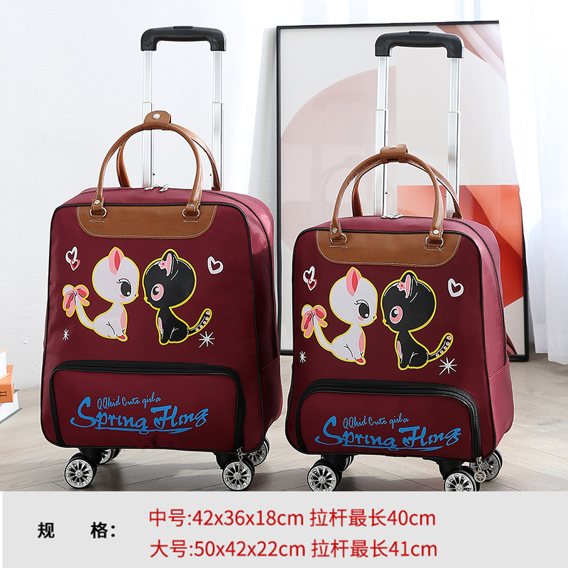 Big white lovely pull rod bag lightweight Oxford cloth short distance lightweight luggage pull rod luggage mute universal wheel