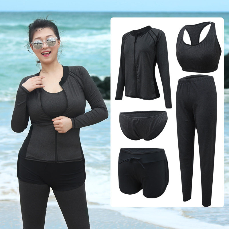 Enlarge Code Long sleeves Swimsuit Women Fat MM Xian Slim Five Pieces Two-piece Flat Angle Long Pants Sunscreen Speed Dry Surf Jellyfish