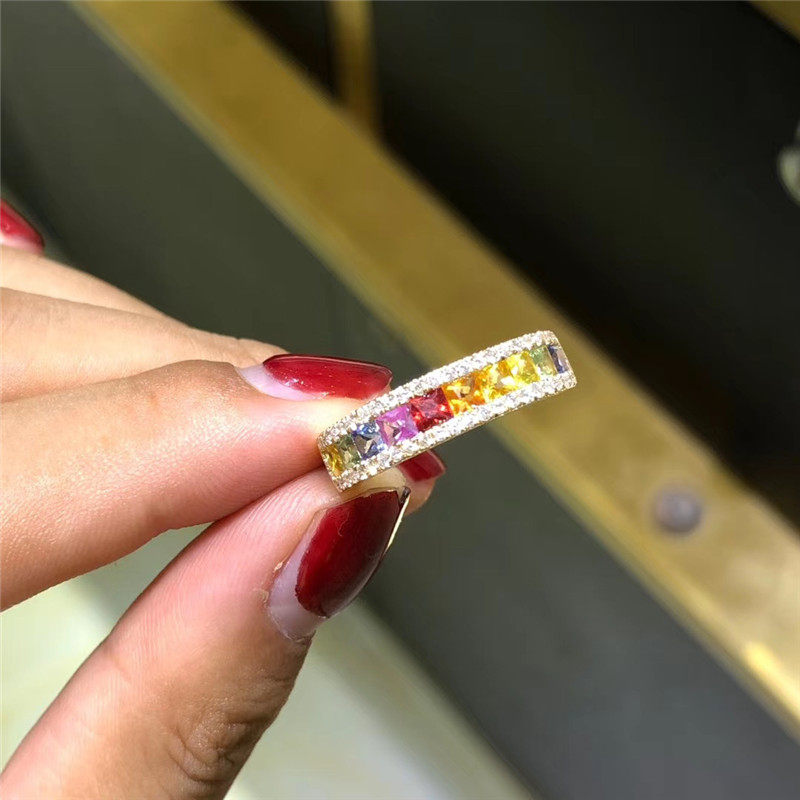18k thick gold rainbow ring ring number color gemstone color according to factory shipment
