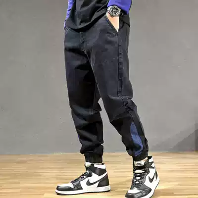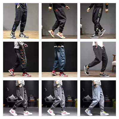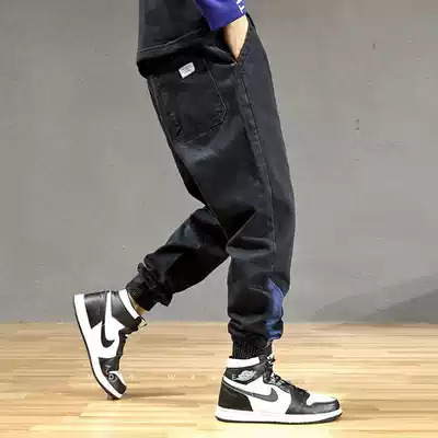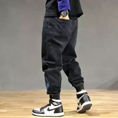 Tide brand jeans men's drawstring harem pants loose men's trend plus fat casual large size nine-point trousers