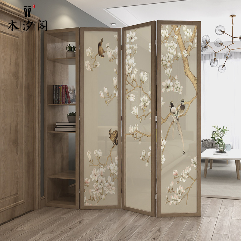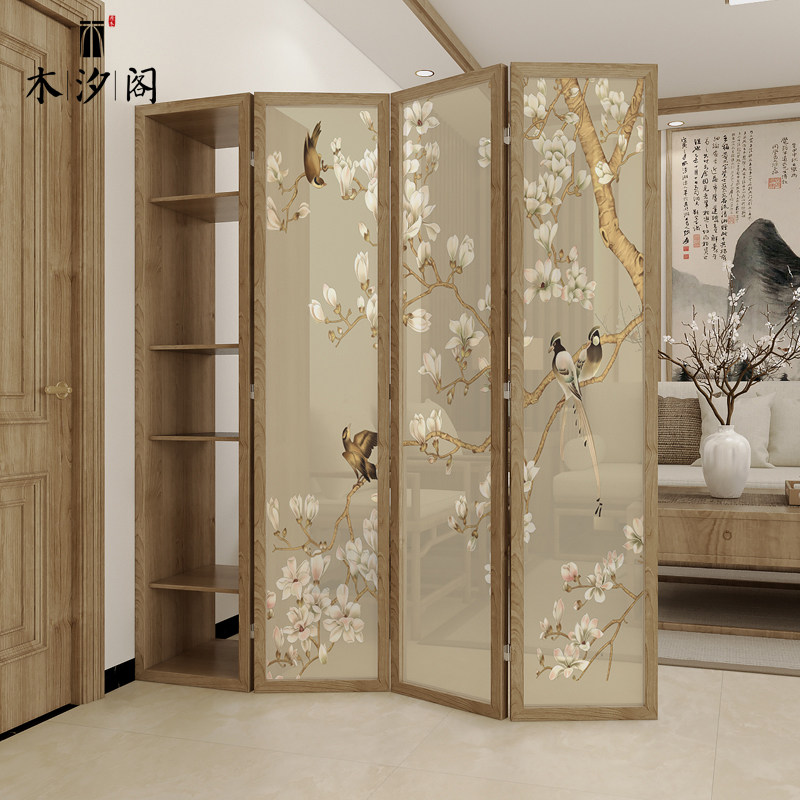 New Chinese Screen Partition Living Room Entrance to the family Guan Guan Cabinet Decoration Home Folding Mobile Solid Wood Minima Modern Folding Screen