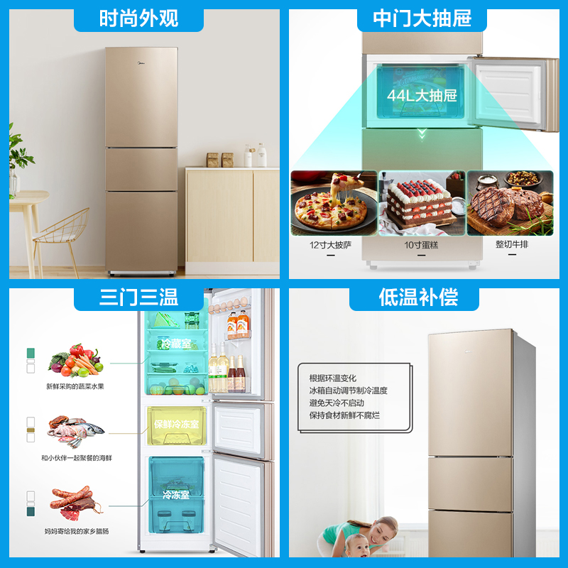 The 215-liter three-door refrigerator 213-liter air-cooled refrigerator 213-liter three-door refrigerator 215-liter 3-door 2-day 1-degree micro-cream 2-day micro-cream 215-liter 3-door air-cooled