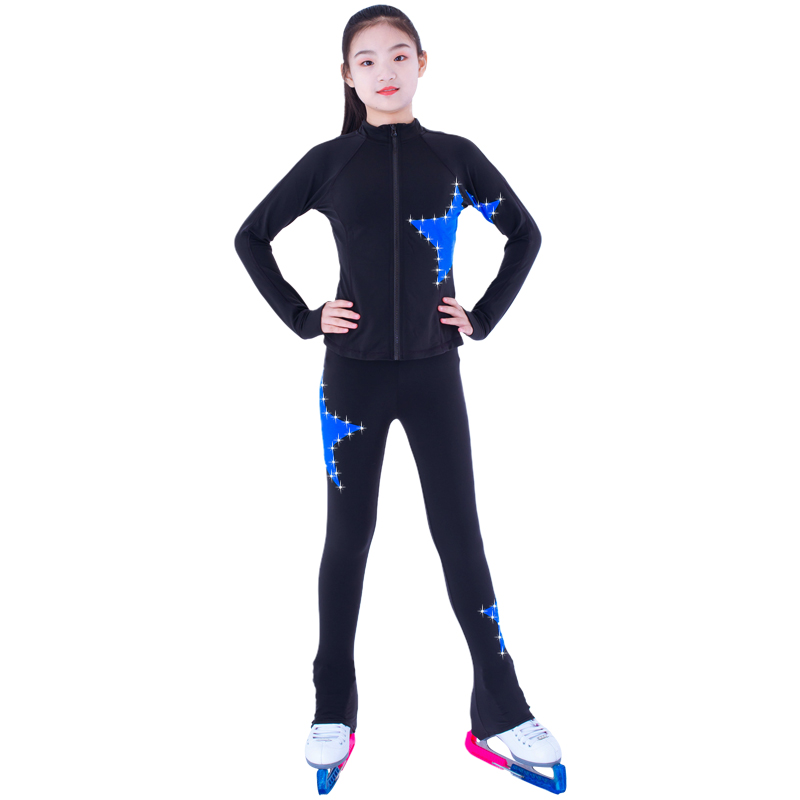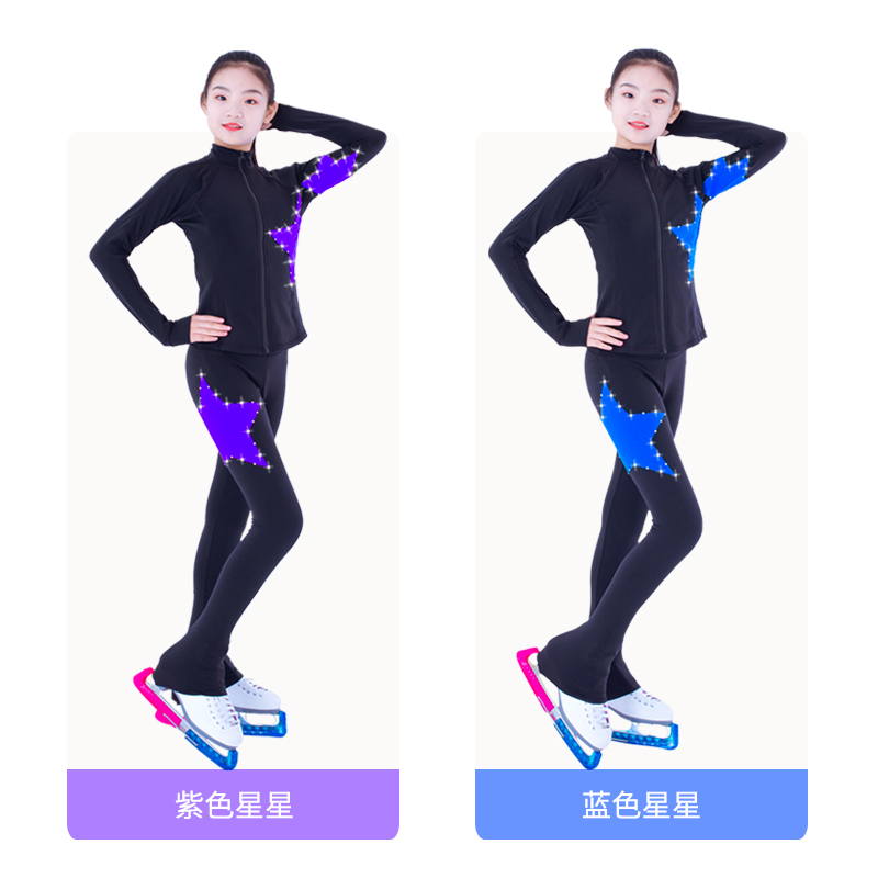 Pattern skating suit plus velvet five-pointed star hot drill high stretch pants shoes four seasons training performance clothing children and women