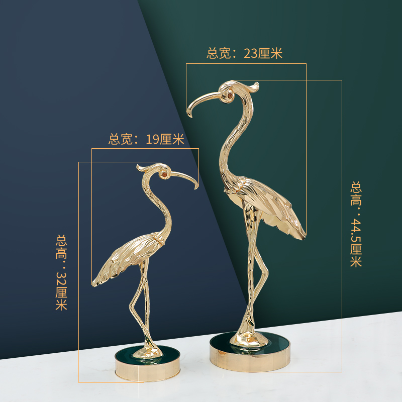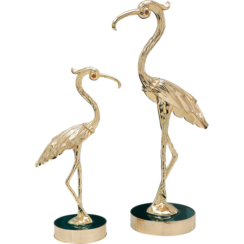 Light luxury crane gold-plated drawing room with modern minimal metal accessories villa enamel decoration