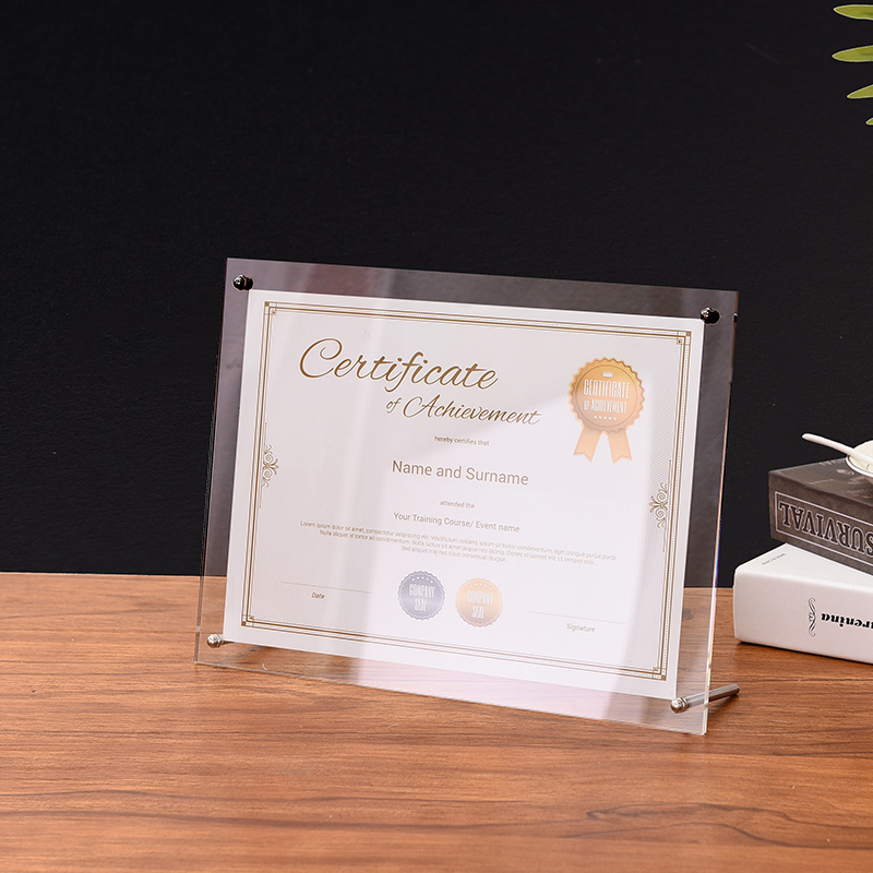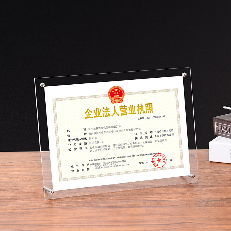 Transparent acrylic frame stands A4 business license frame hanging wall 8 10 12 inch license certificate frame