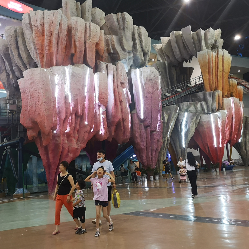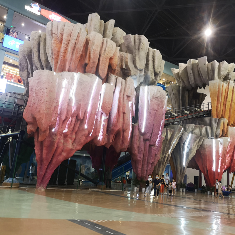 On-site production of large fake mountain stone building projects Business Street Square MeChen installations landscaping sculptures custom-made