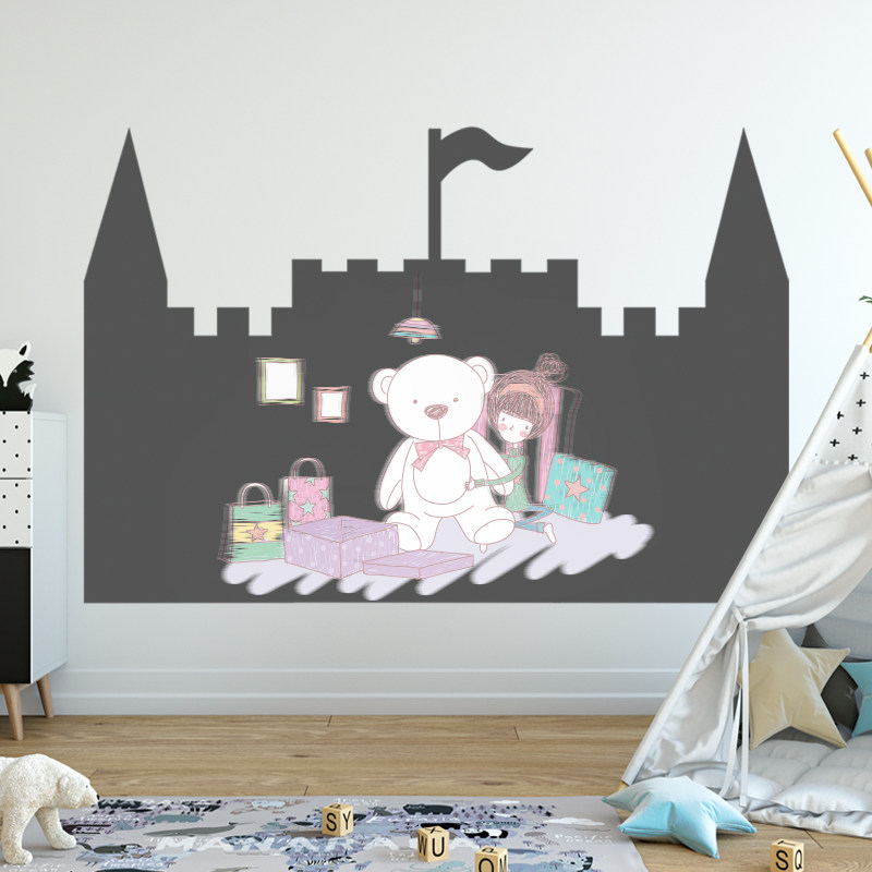 Sharp-pointed magnetic double-layer blackboard wall sticker castle animal cartoon children's room graffiti wall home creative decoration dust-free small whiteboard self-adhesive erasable environmental protection kindergarten can be customized
