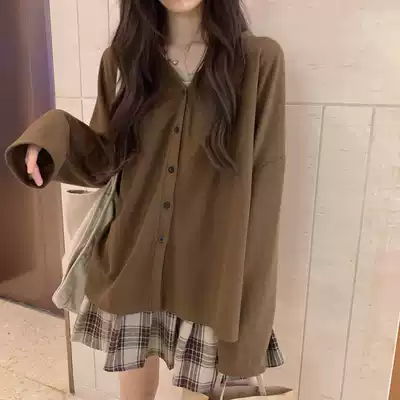 Korean salt jacket 2021 new women's autumn jacket small man retro loose versatile long sleeve cardigan tide