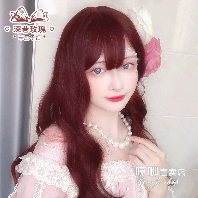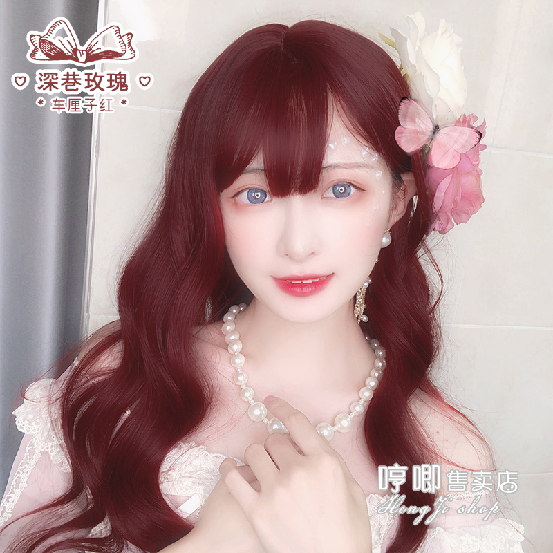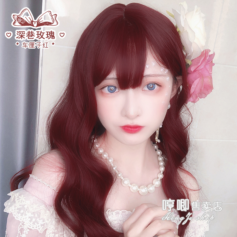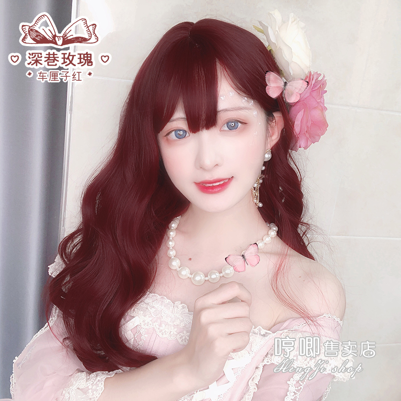 Whine wig female long curly hair lolita natural net red fashion orange red girl daily fake hair◇Deep lane rose