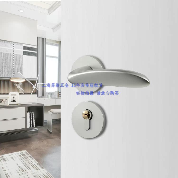 Space Aluminum Home Lock Indoor Board Hand Lock Room Door Lock Universal Mute Two-piece Lock Minima Bedroom Door Lock Aluminum Alloy