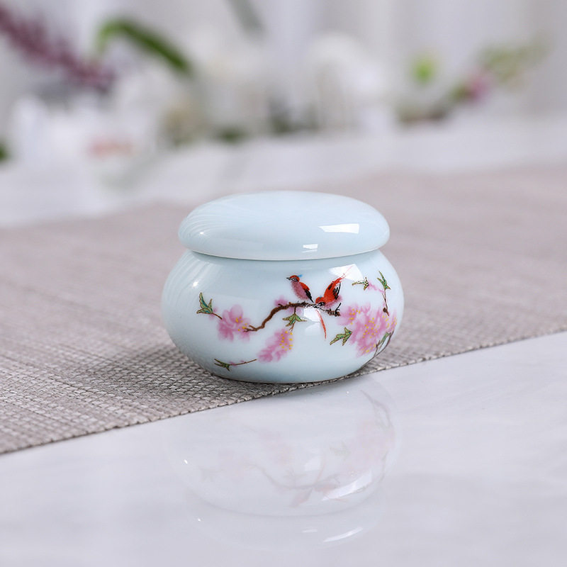 Such As Lingzi Ancient Wind Carving Flower Lipstick Ceramic Tank Loo God Oil Mouth Grease Mouth Red Pot Tea Balsamic Butter Jar 15G Dress