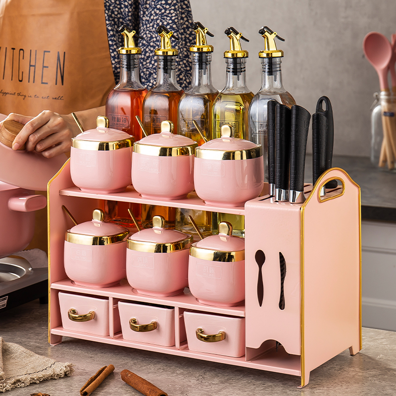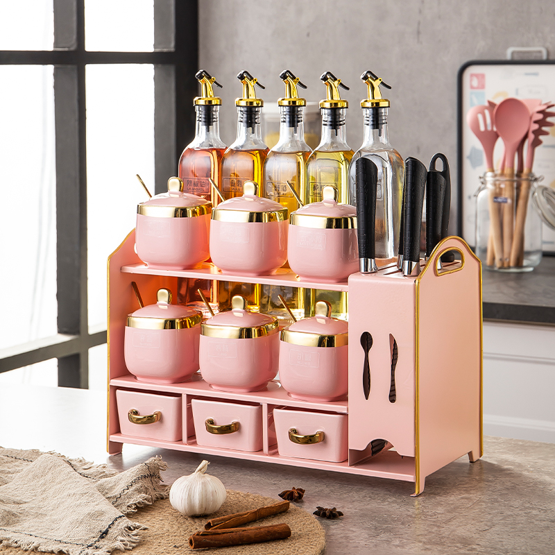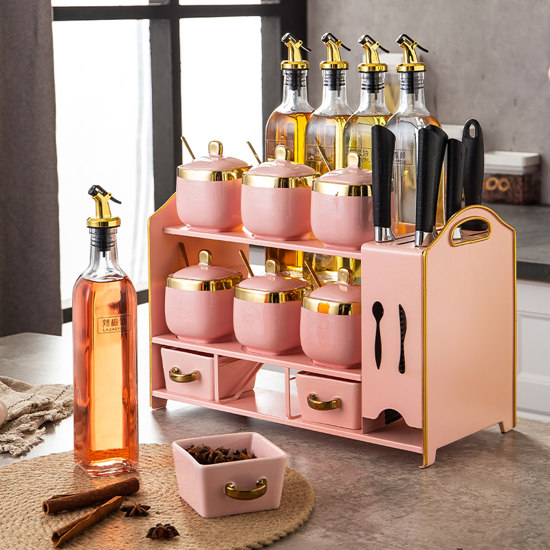 Pink Wrought iron 15-piece set Pink Wrought Iron 15-piece set Chopstick tube Pink Wrought Iron 15-piece set Chopping board rack Pink Wrought Iron 17-piece set Pink seasoning pot x1