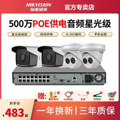 Hikvision monitor full set of equipment set 5 million high-definition outdoor network POE camera complete set of system