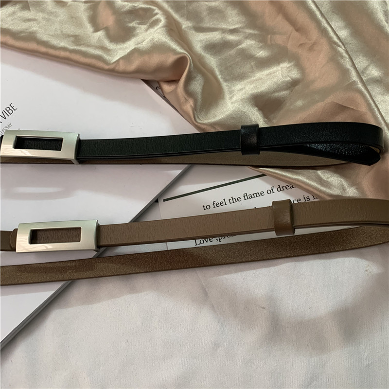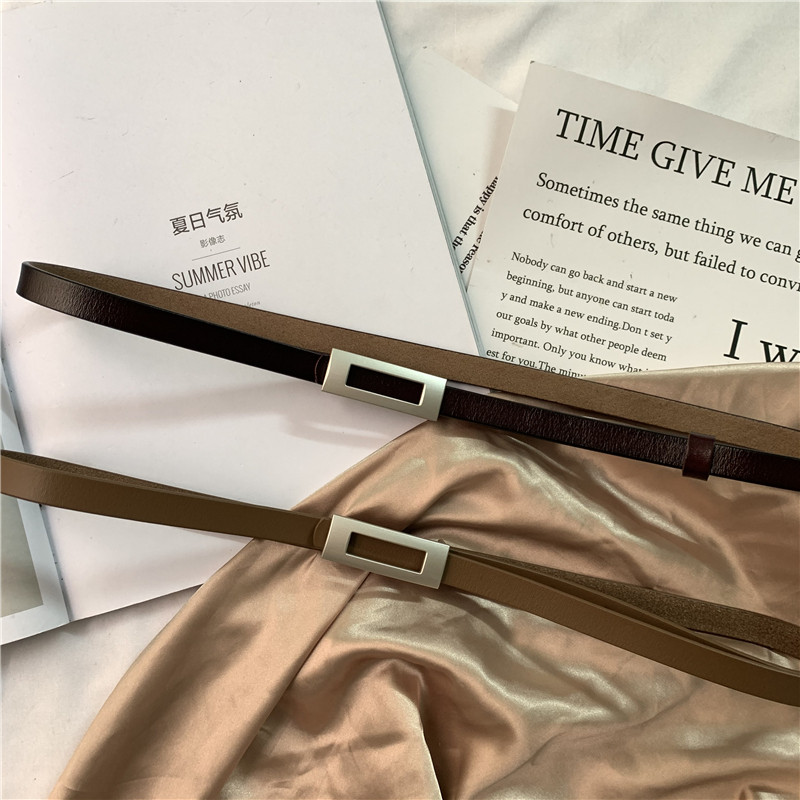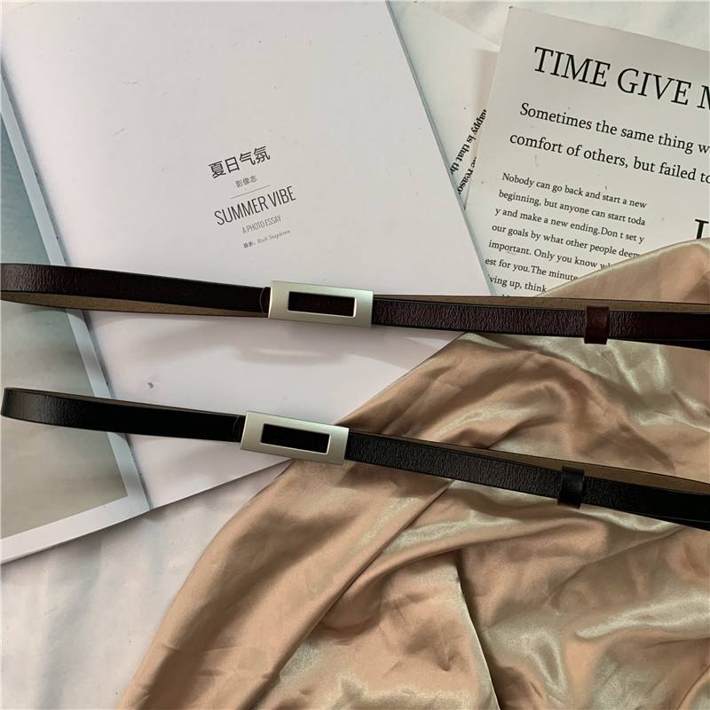 Genuine Leather Slim Belt Women Fashion Brief About 100 Hitch Decoration Korean Cow Leather Slim Leather Slim Leather Belt Women's Sant Pants Belt Pants Belt