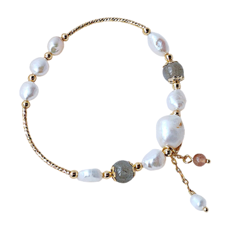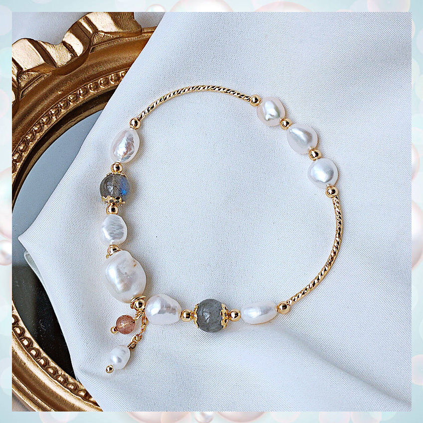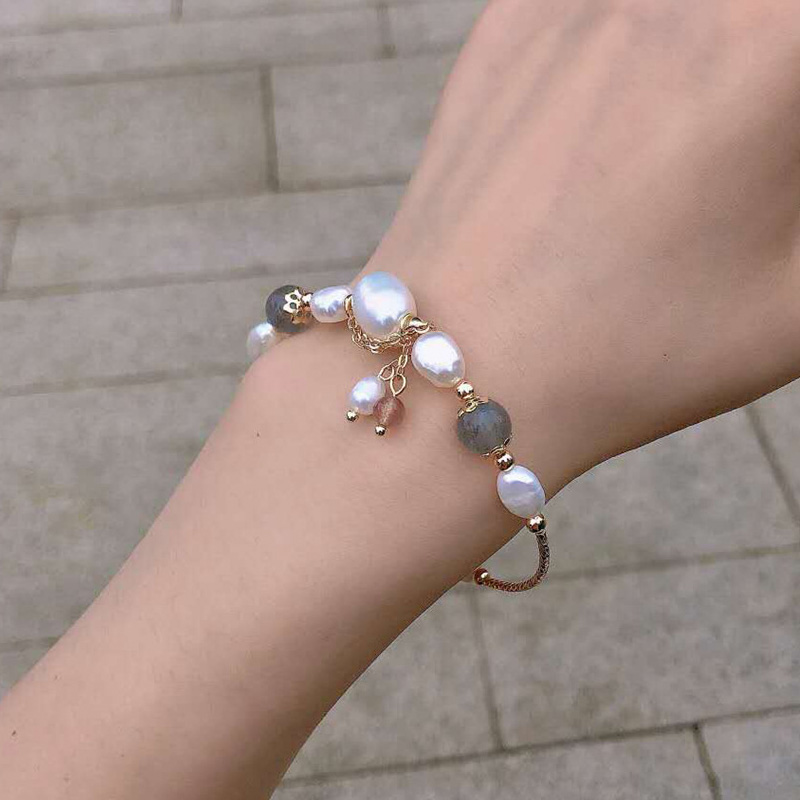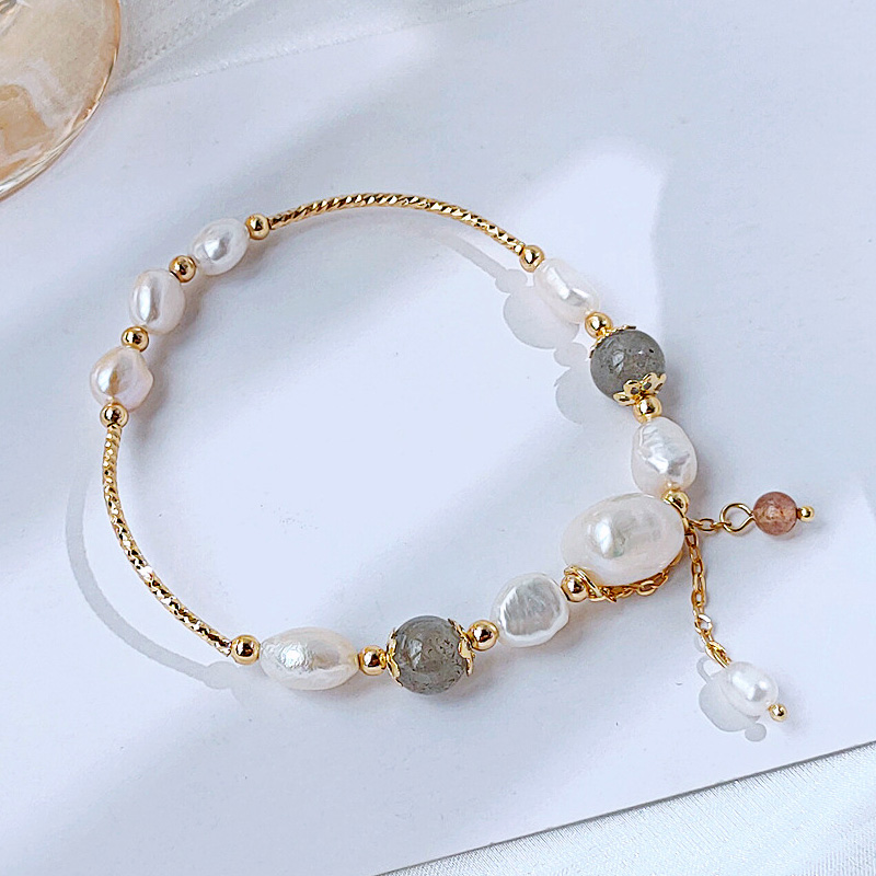 Gray Moonstone Strawberry Crystal Bracelet Women's Frosty Wind Natural Pearl Bracelet Net Red Versatile Temperament Simple Hand Jewelry