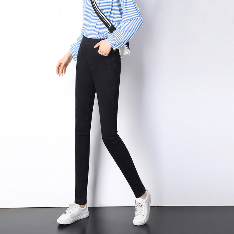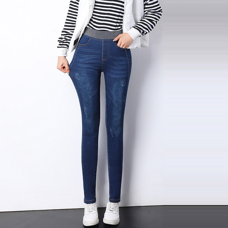 Elastic waist jeans women's 2022 new spring and autumn high waist slimming high skinny pants large size slim tight trousers