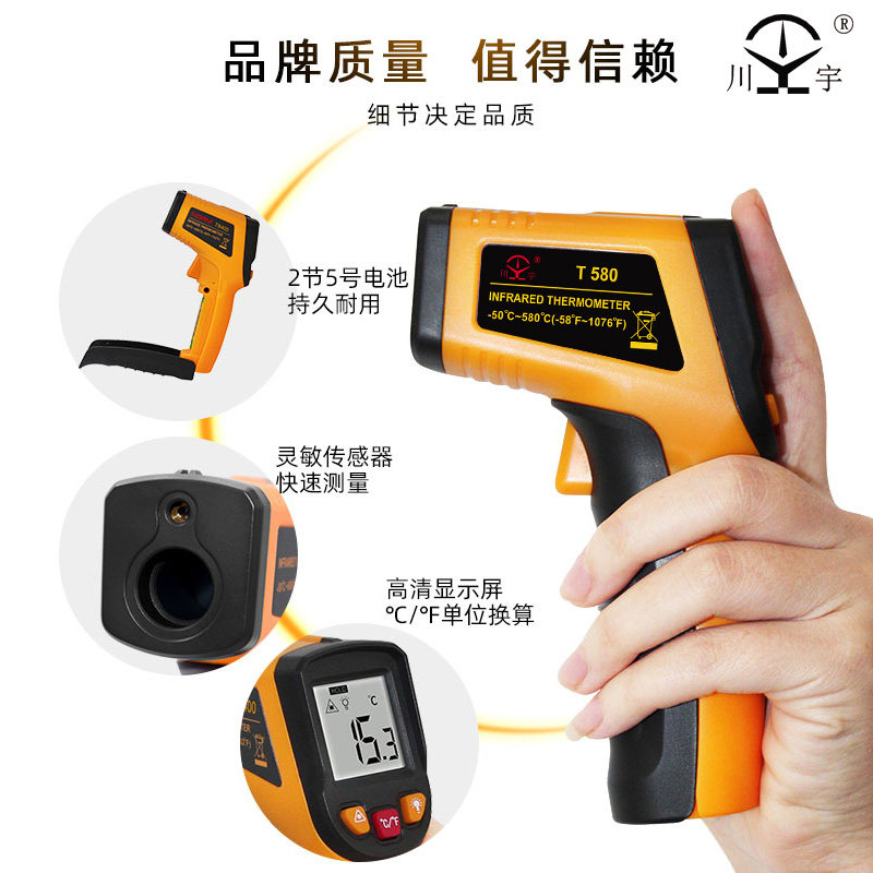 Kawanyu T580 high-precision infrared thermometers industrial thermometric gun detection water temperature oil temperature measuring kitchen baking