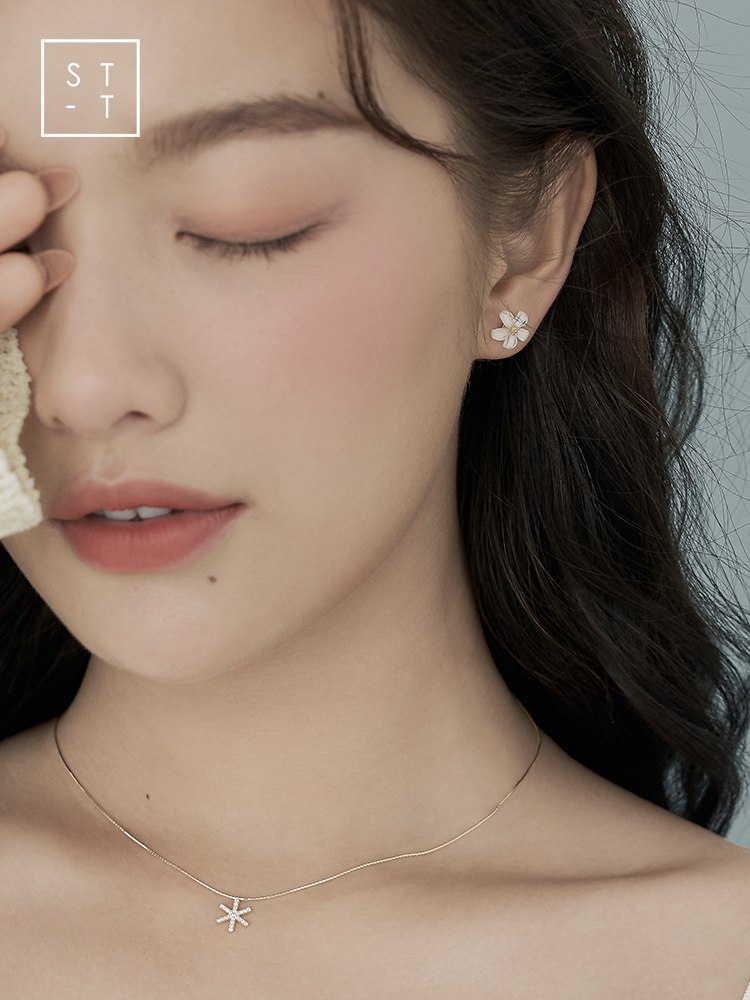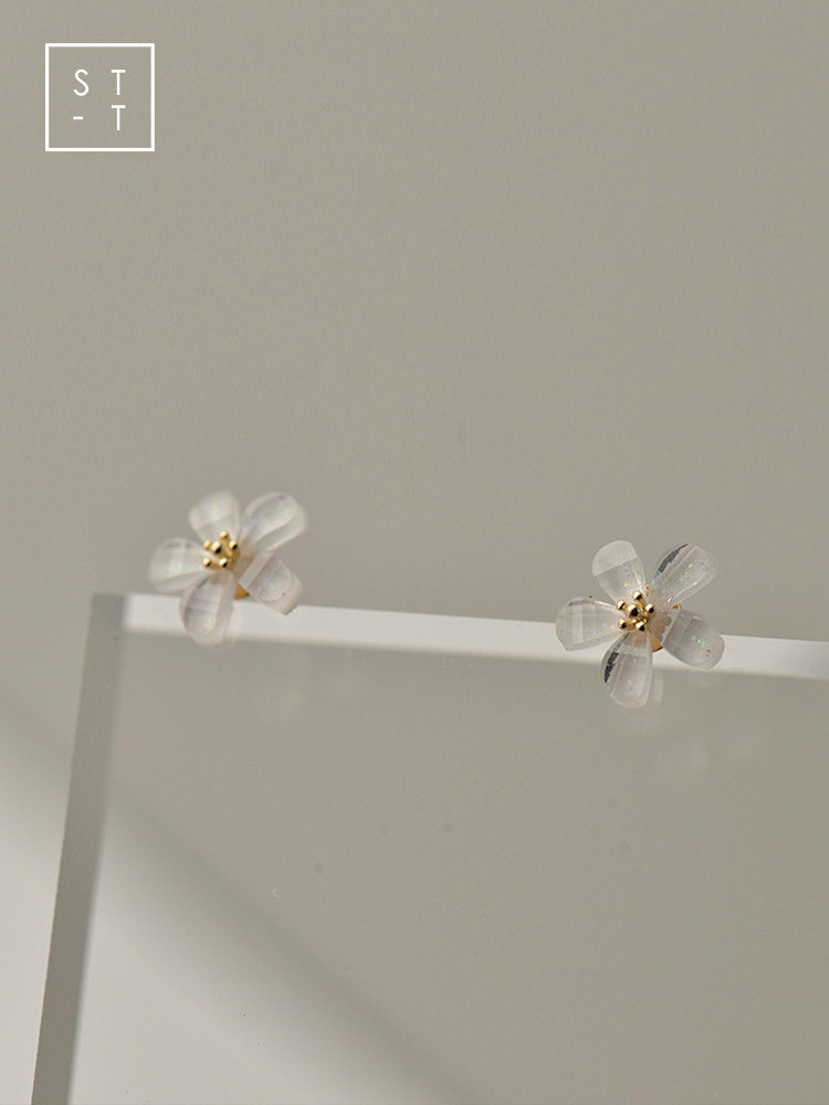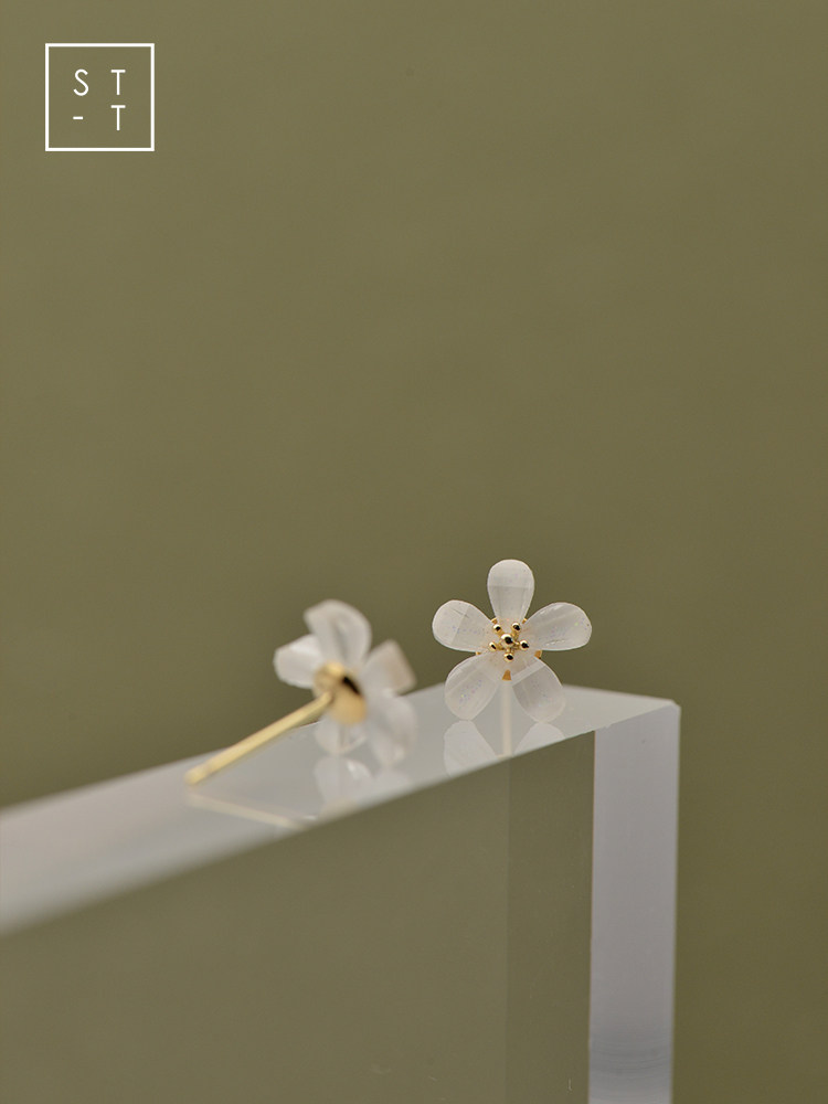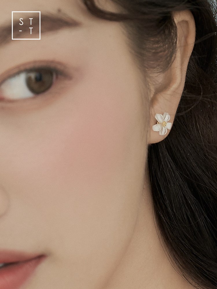 t Shen's wife 925 silver, Japan-South Korea sweet and white flower ear nail female student Mori little fresher art ear ornament