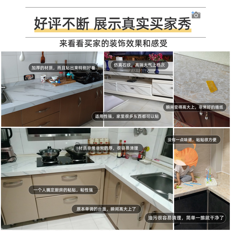 White waterproof anti-high temperature resistant imitation marble sticker Self-adhesive kitchen integral cupboard Kitchen Tile Home Tile Furniture renovation