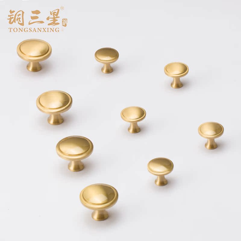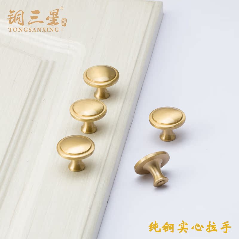 Brass wardrobe small handle overall cabinet drawer Nordic pure copper handle simple round single hole handle