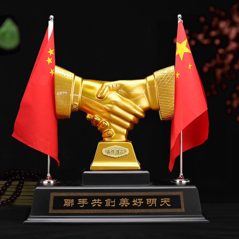 Red flag handshake No. 1 (bright gold) high wooden seat red flag handshake No. 3 (bright gold) high wooden seat red flag handshake No. 4 (bronze) desktop red flag handshake No. 2 (bright gold)