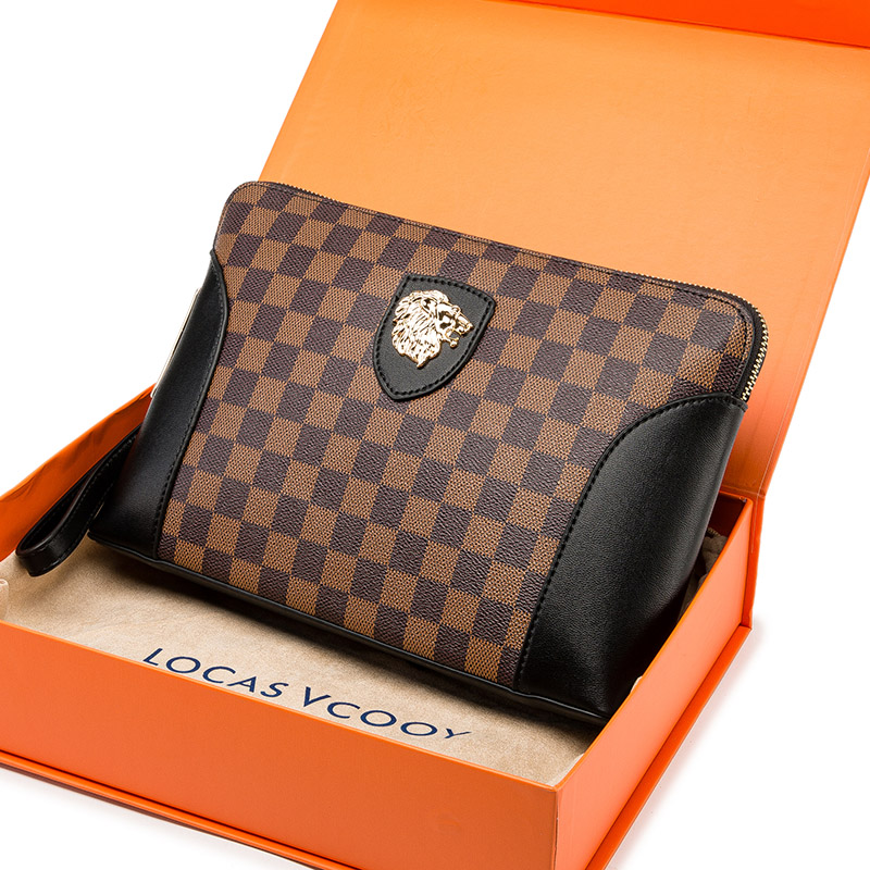 Envelope bag men's leather fingerprint unlock bag net red clutch bag Large capacity luxury handbag Trendy personality clutch bag