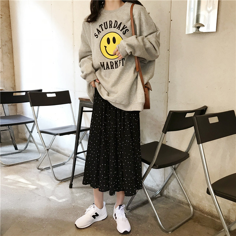 Autumn Winter Dress New Korean Version Large Size Gestation Woman Clothing Loose Necropolis Hooded Sweatshirt Fat MM Cartoon Undershirt Tide