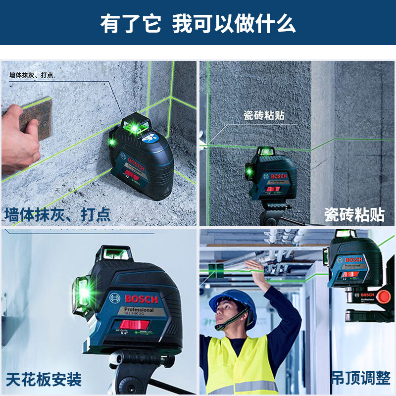 Bosch GLL3-60XG green light 12-wire gradienter line gauge plowing instrument plastered with point sticker wall gauge high precision