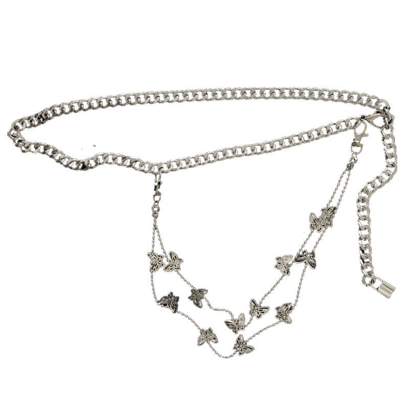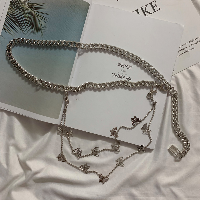 ins butterfly waist chain lady decorate fine belt brief approb. 100 lap dress metal iron chain fashion leather strap skirt