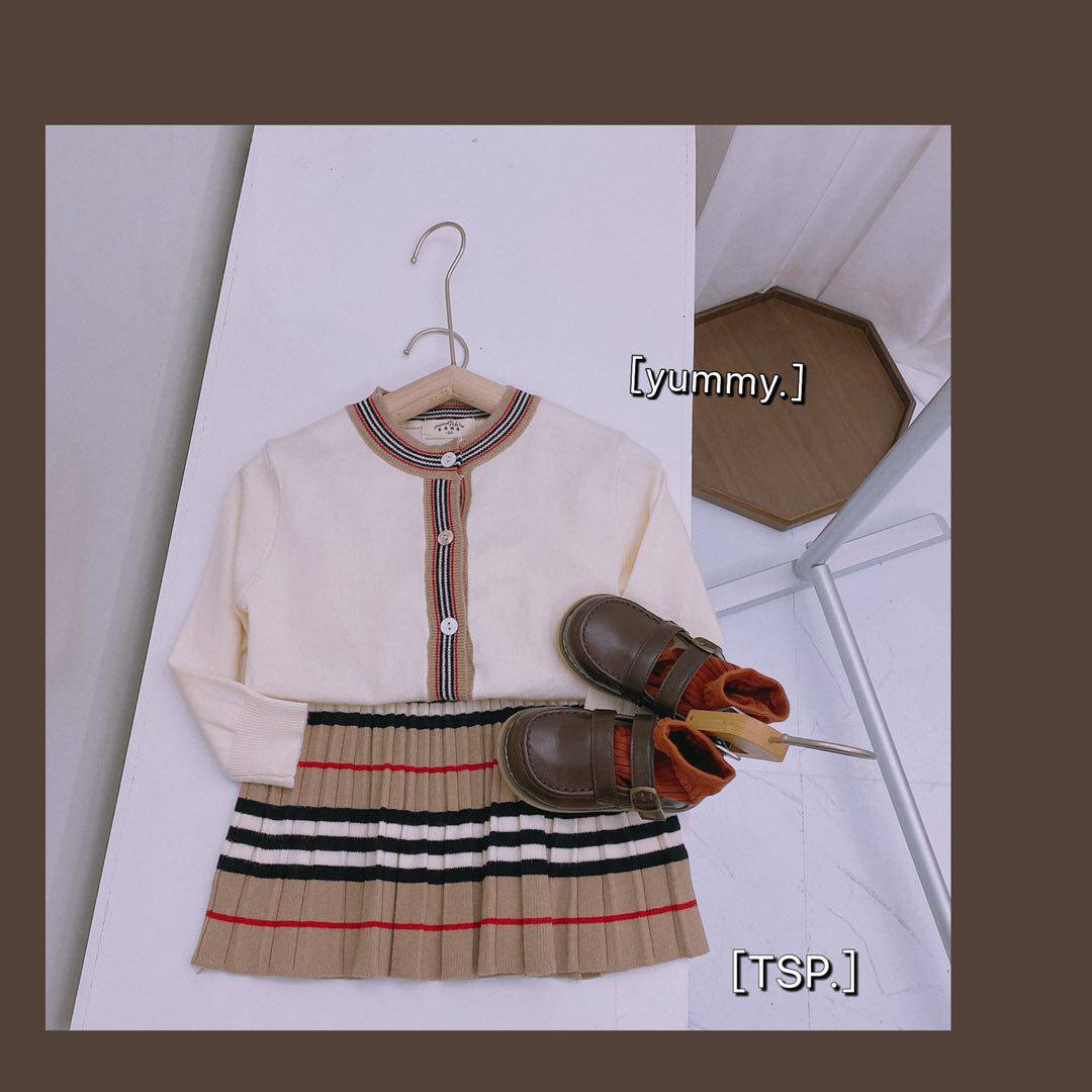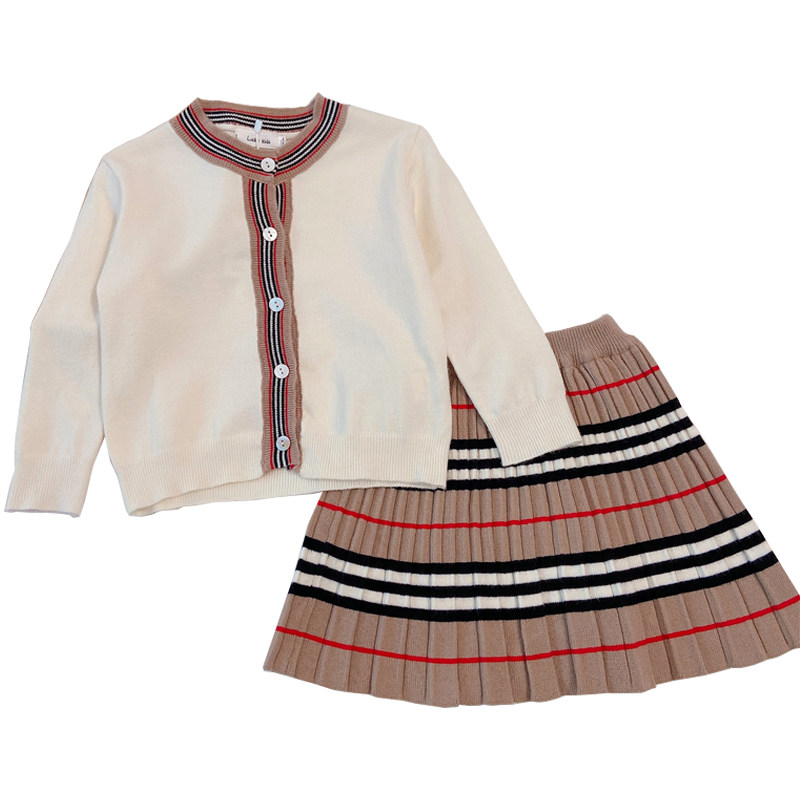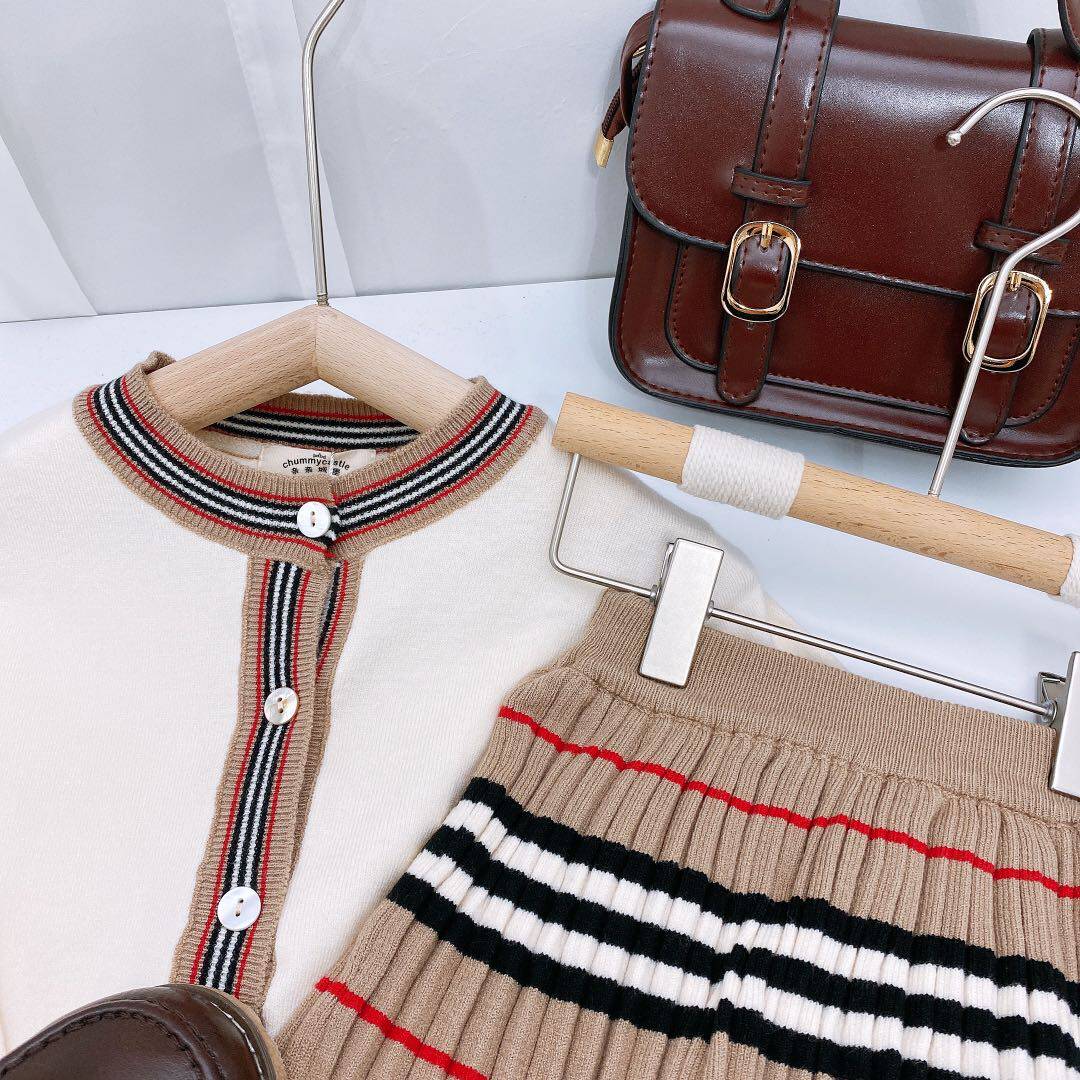 Girls spring 2021 new children's baby Foreign school sweater suit Children's knitted cardigan short skirt two-piece set