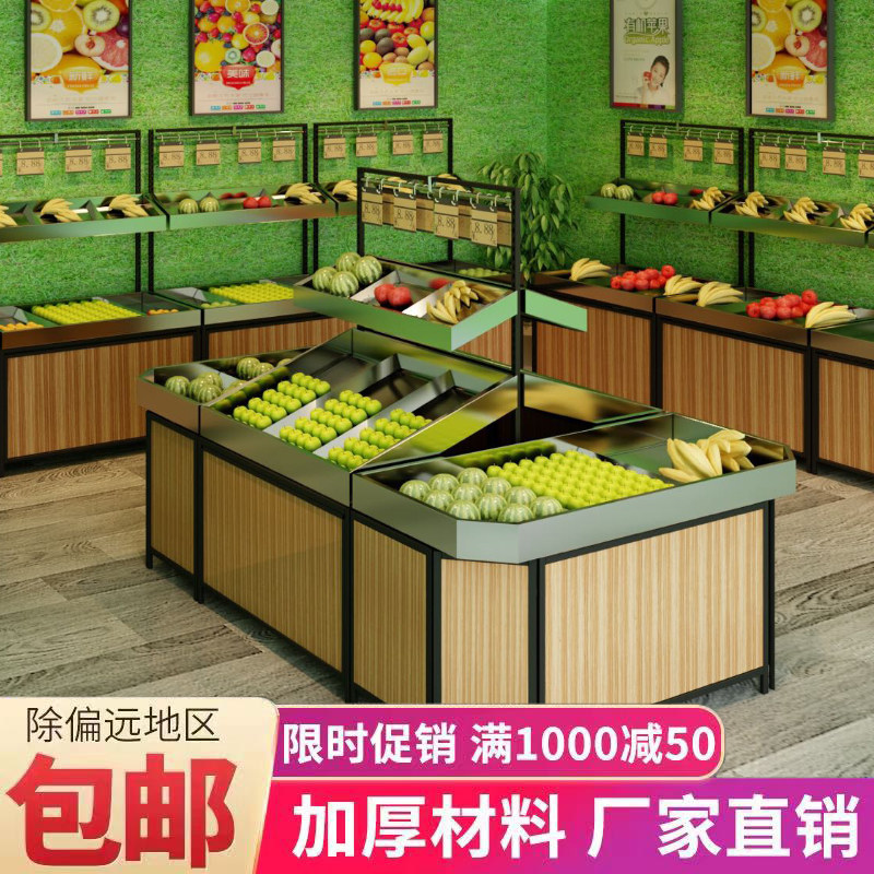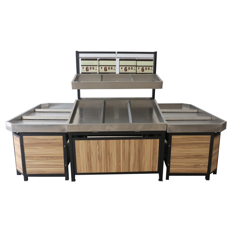 Supermarket Stainless Steel Fruits Vegetable Shelving Display Shelf Double Middle Island Water Fruit Shop Raw Fresh Fruit Vegetable Rack Commercial