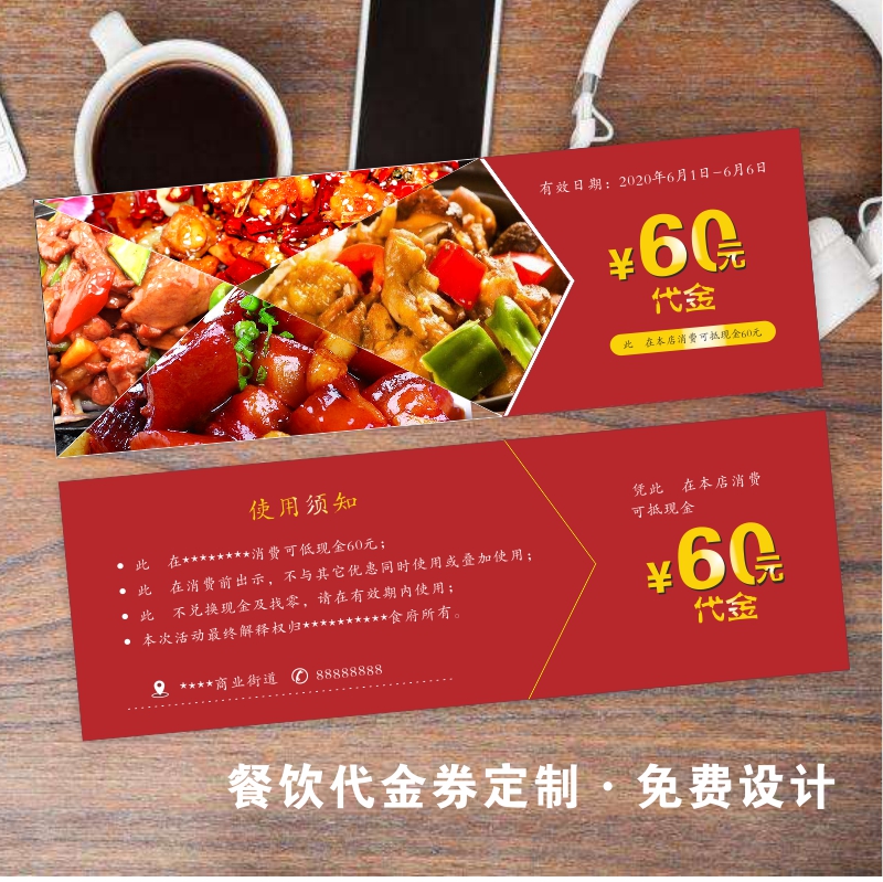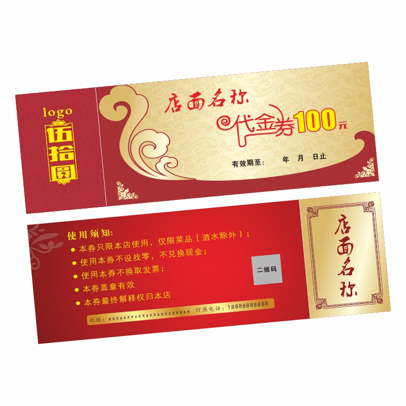 Catering Generation Golden Vouchers Custom Hotel Barbecue Hotpot Snack Cool Powder Cash Witha Coupon Design Print Set