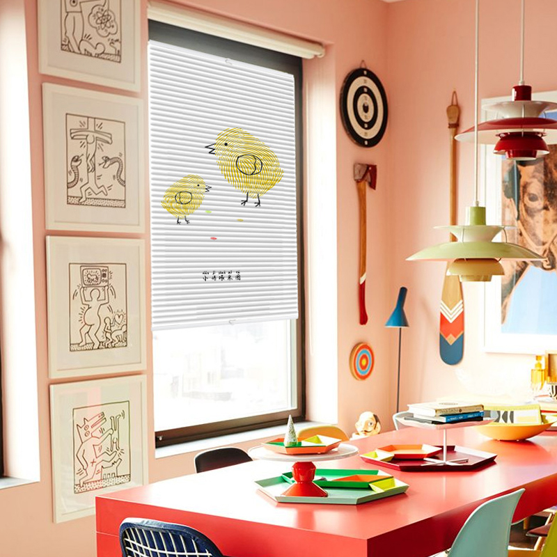 Hengki Free Punching cartoon Kitchen Makeup Room Venetian Blind Honeycomb Organ Curtain inner-open Inverted Curtain up and down roller blinds