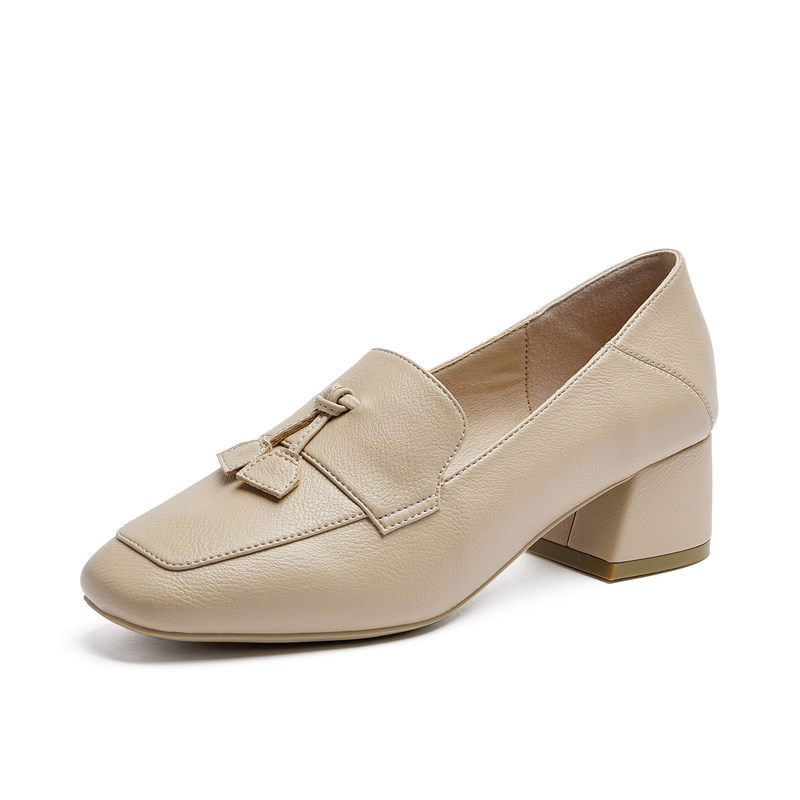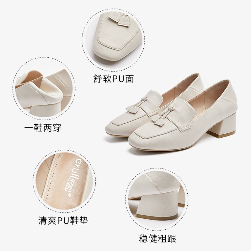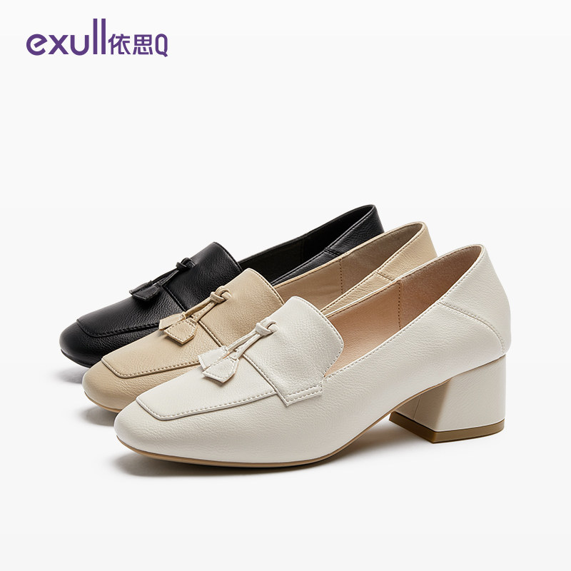 Yisi q2020 autumn new retro British style single shoes women's low-help square head middle heel fashion casual loafers